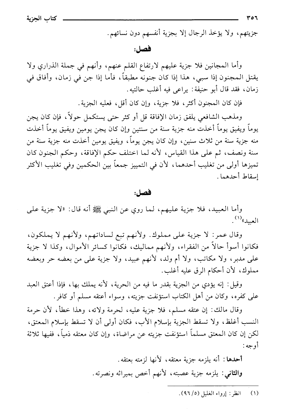 وأما المجانين فلا جزية عليهم لارتفاع القلم عنهم، وأنهم في جملة الذراري ولا يقتل المجنون إذا سبي، هذا إذا كان جنونه مطبقا، فأما إذا جن في زمان، وأفاق في زمان، فقد قال أبو حنيفة: يراعي فيه أغلب حالتيه.
