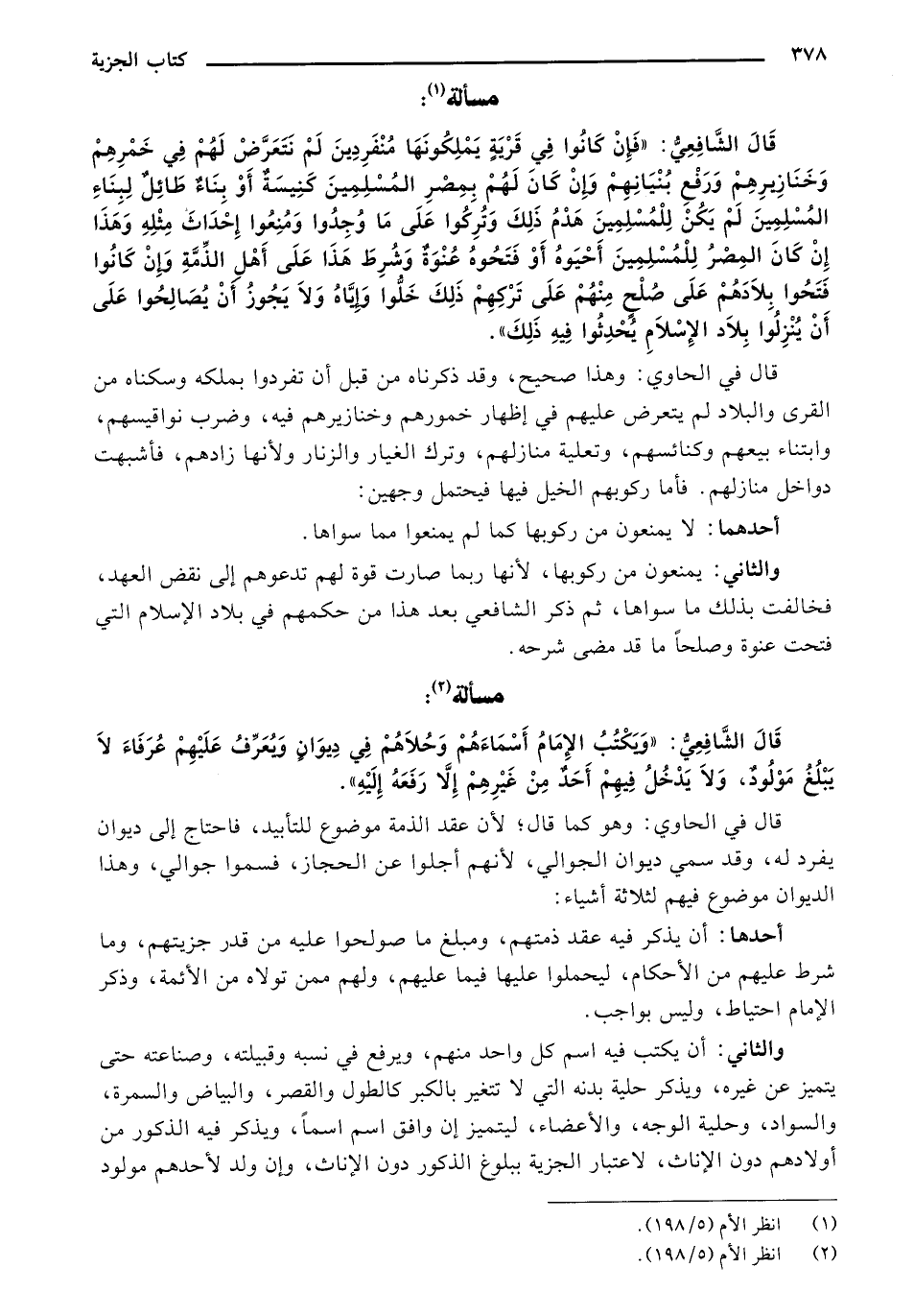 والثاني: يمنعون من ركوبها، لأنها ربما صارت قوة لهم تدعوهم إلي نقض العهد، فخالفت بذلك ما سواها، ثم ذكر الشافعي بعد هذا من حكمهم في بلاد الإسلام التي فتحت عنوة وصلحا ما قد مضي شرحه.