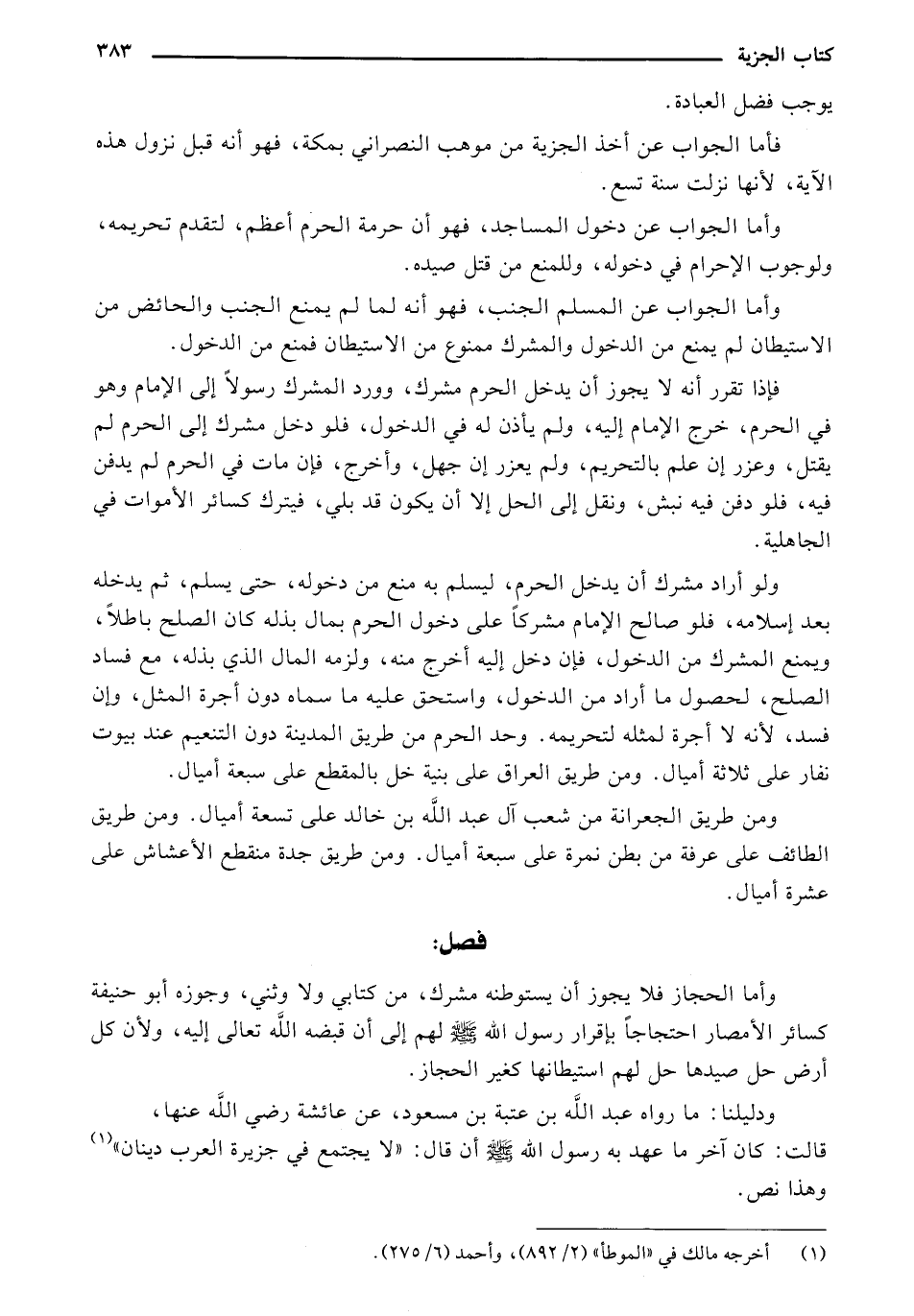 وأما الحجاز فلا يجوز أن يستوطنه مشرك، من كتابي ولا وثني، وجوزه أبو حنيفة كسائر الأمصار احتجاجًا بإقرار رسول الله صلى الله عليه وسلم لهم إلى أن قبضه الله تعالى إليه، ولأن كل أرض حل صيدها حل لهم استيطانها كغير الحجاز.