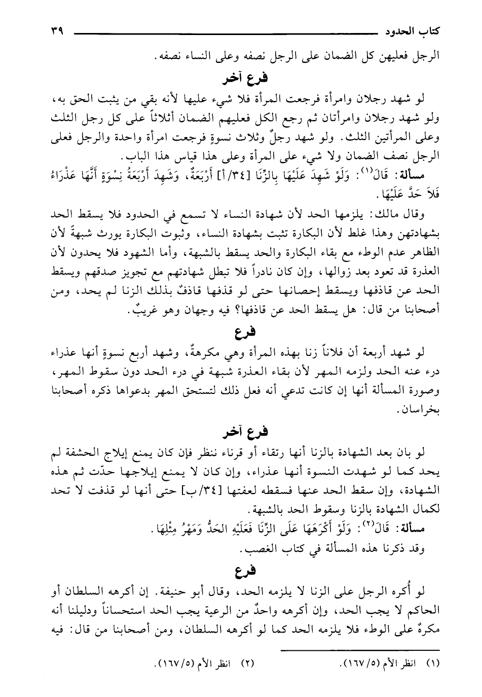 وقال مالك: يلزمها الحد لأن شهادة النساء لا تسمع في الحدود فلا يسقط الحد بشهادتهن وهذا غلط لأن البكارة تثبت بشهادة النساء، وثبوت البكارة يورث شبهة لأن الظاهر عدم الوطء مع بقاء البكارة والحد يسقط بالشبهة، وأما الشهود فلا يحدون لأن العذرة قد تعود بعد زوالها، وإن كان نادرًا فلا تبطل شهادتهم مع تجويز صدقهم ويسقط الحد عن قاذفها ويسقط إحصانها حتى لو قذفها قاذفٌ بذلك الزنا لم يحد، ومن أصحابنا من قال: هل يسقط الحد عن قاذفها؟ فيه وجهان وهو غريبٌ.