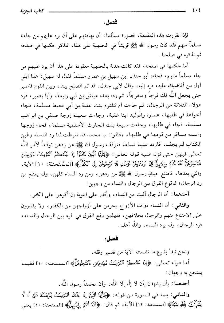 أما حكمها في صلحه، فقد كانت هدنة بالحديبية معقودة على هذا أن يرد عليهم من جاء مسلمًا منهم، فجاءه أبو جندل ابن سهيل بن عمرو مسلمًا فقال له سهيل: هذا ابني أول من أقاضيك عليه، فرد إليه، وقال لأبي جندل: قم تم الصلح بيننا، وبين القوم فاصبر حتى يجعل الله لك فرجًا ومخرجًا، ثم رده بعده عياش بن أبي ربيعة، وأبا بصير، فرد هؤلاء الثلاثة من الرجال، ثم جاءت أم كلثوم بنت عقبة بن أبي معيط مسلمة، فجاء أخواها في طلبها، عمارة والوليد ابنا عقبة، وجاءت سعيدة زوجة صيفي بن الراهب مسلمة، فجاء في طلبها، وجاءت سبيعة بنت الحارث الأسلمية مسلمة، فجاء زوجها واسمه مسافر من قومها في طلبها، وقالوا: يا محمد قد شرطت لنا رد النساء وطين الكتاب لم يجف، فاردد علينا نساءنا فتوقف رسول الله صلى الله عليه وسلم عن ردهن توقعًأ لأمر الله تعالى فيهن حتى نزل قوله تعالى {يَا أَيُّهَا الَّذِينَ آمَنُوا إذَا جَاءَكُمُ المُؤْمِنَاتُ مُهَاجِرَاتٍ فَامْتَحِنُوهُنَّ اللَّهُ أَعْلَمُ بِإيمَانِهِنَّ فَإنْ عَلِمْتُمُوهُنَّ مُؤْمِنَاتٍ فَلا تَرْجِعُوهُنَّ إلَى الكُفَّارِ} [الممتحنة 10] الآية، والتي بعدها، فامتنع حينئذ رسول الله صلى الله عليه وسلم من ردهن، ومن رد النساء كلهن، ولم يمتنع من رد الرجال؛ لوقوع الفرق بين الرجال والنساء من وجهين:
