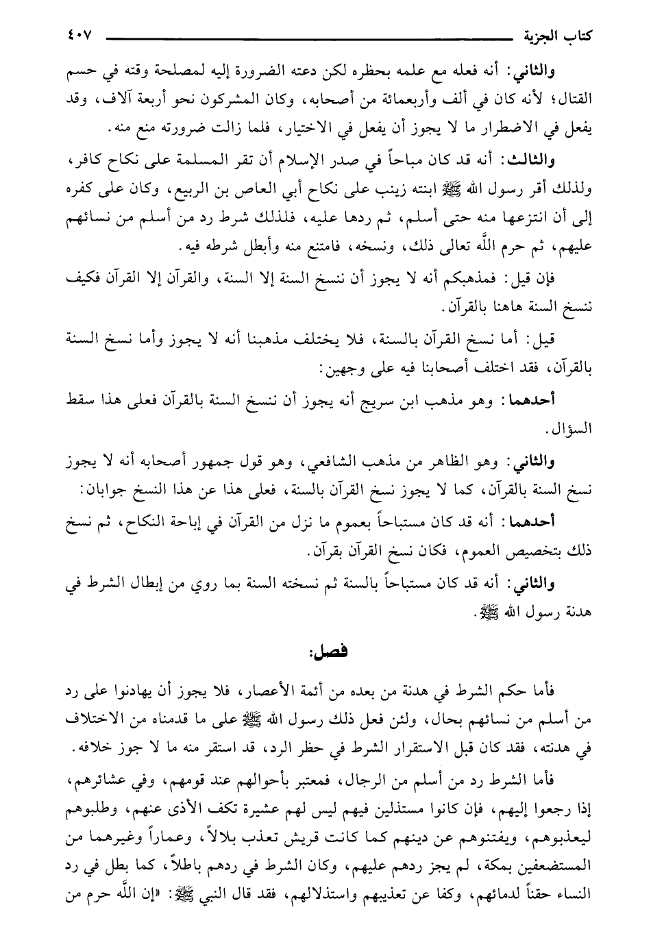 فأما حكم الشرط في هدنة من بعده من أئمة الأعصار، فلا يجوز أن يهادنوا على رد من أسلم من نسائهم بحال، ولئن فعل ذلك رسول الله صلى الله عليه وسلم على ما قدمناه من الاختلاف في هدنته، فقد كان قبل الاستقرار الشرط في حظر الرد، قد استقر منه ما لا جوز خلافه.