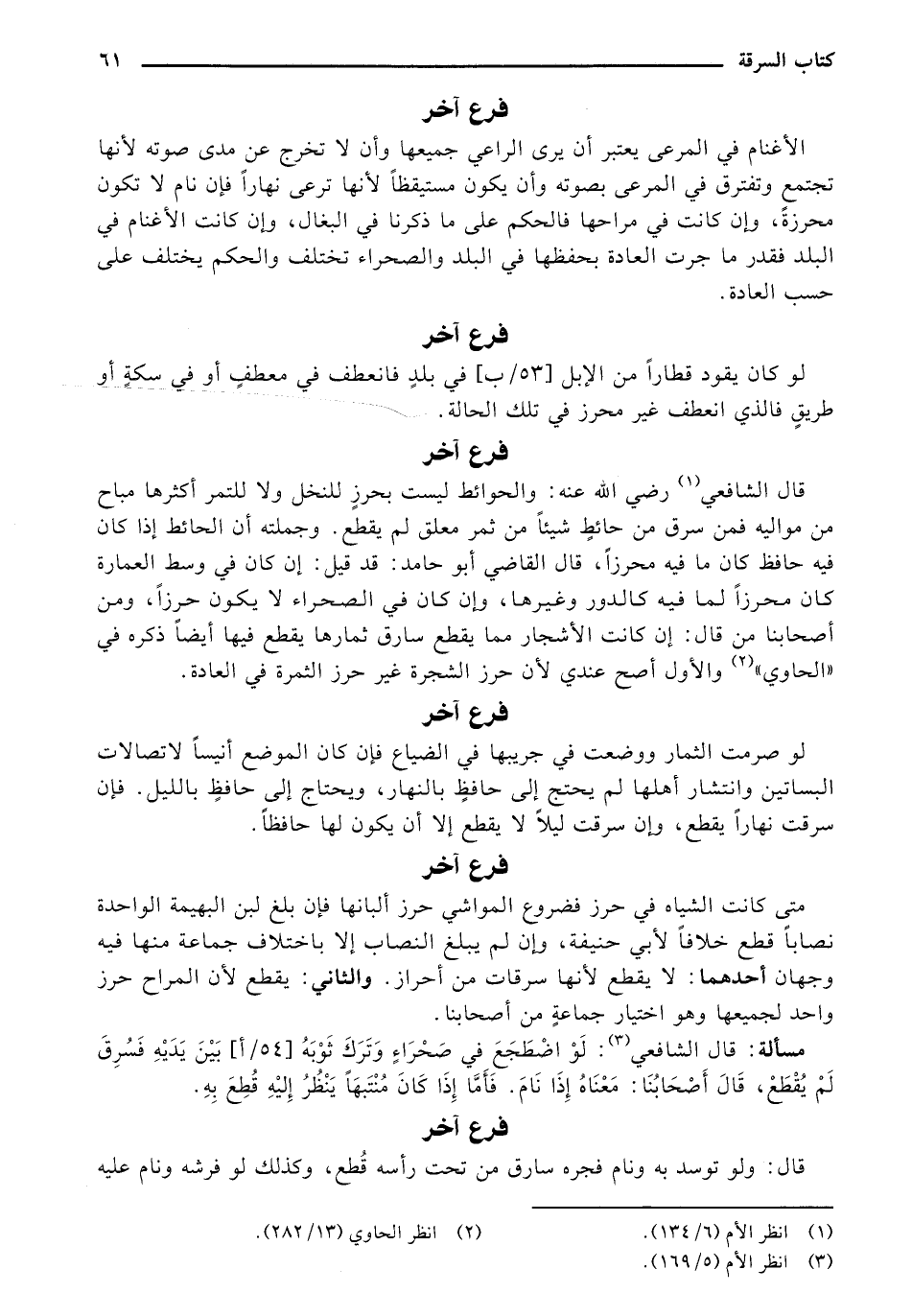 الأغنام في المرعى يعتبر أن يرى الراعي جميعها وأن لا تخرج عن مدى صوته لأنها تجتمع وتفترق في المرعى بصوته وأن يكون مستيقظًا لأنها ترعى نهارًا فإن نام لا تكون محرزة، وإن كانت في مراحها فالحكم على ما ذكرنا في البغال، وإن كانت الأغنام في البلد فقدر ما جرت العادة بحفظها في البلد والصحراء تختلف والحكم يختلف على حسب العادة.