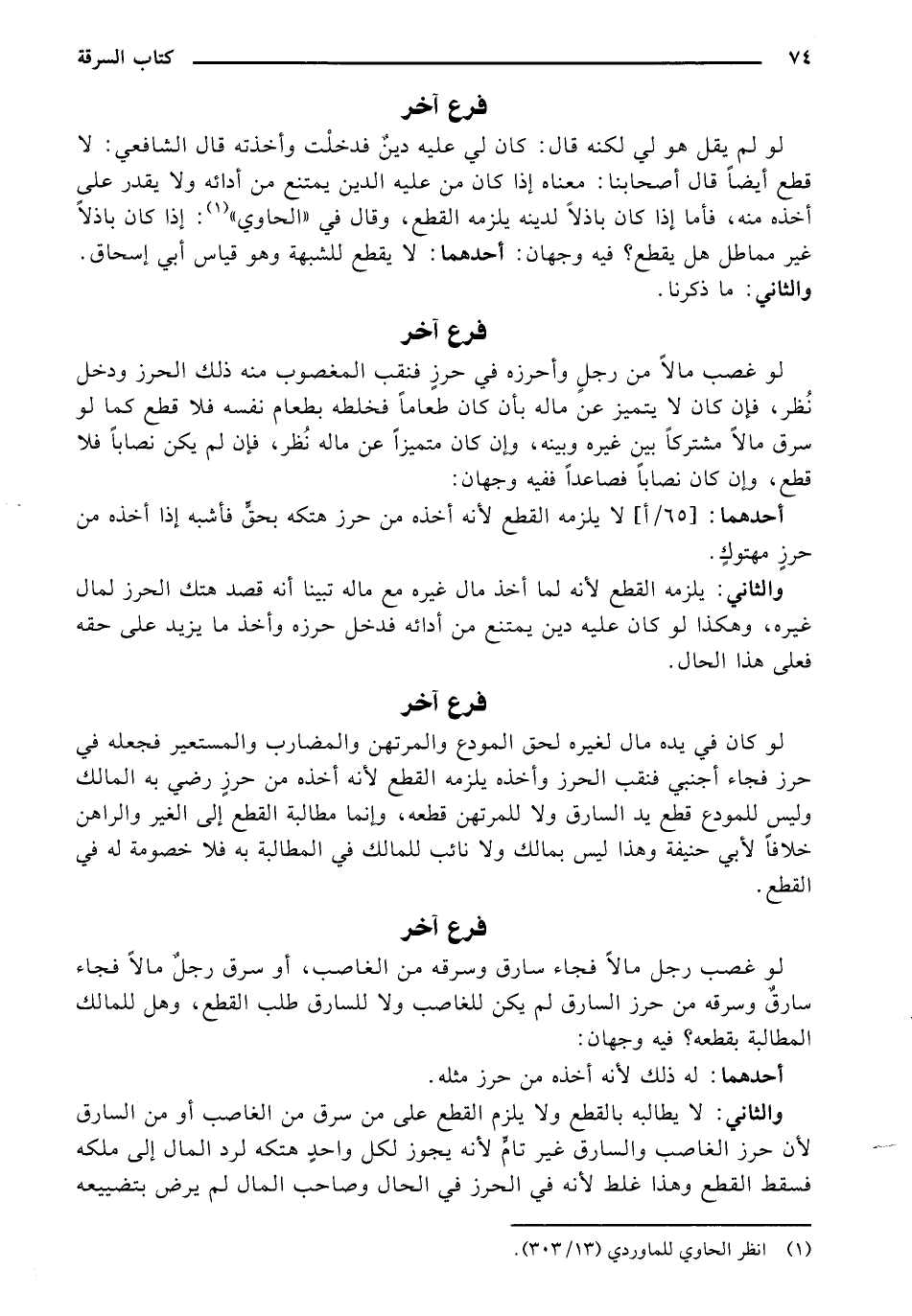 والثاني: يلزمه القطع لأنه لما أخذ مال غيره مع ماله تبينا أنه قصد هتك الحرز لمال غيره، وهكذا لو كان عليه دين يمتنع من أدائه فدخل حرزه وأخذ ما يزيد على حقه فعلى هذا الحال.