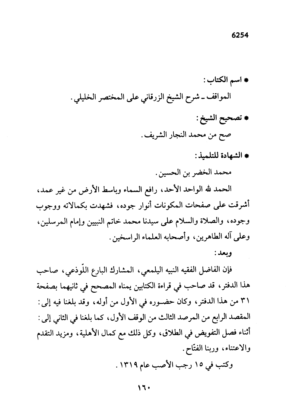 وكتب في 15 رجب الأصب عام 1319.