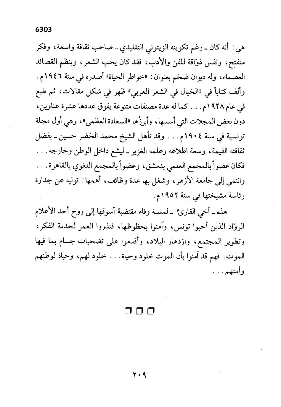هذه -أخي القارئ- لمسة وفاء مقتضبة أسوقها إلى روح أحد الأعلام الروّاد الذين أحبوا تونس، وآمنوا بحظوظها، فنذروا العمر لخدمة الفكر، وتطوير المجتمع، وازدهار البلاد، وأقدموا على تضحيات جسام بما فيها الموت. فهم قد آمنوا بأن الموت خلود وحياة. . . خلود لهم، وحياة لوطنهم وأمتهم. . .
