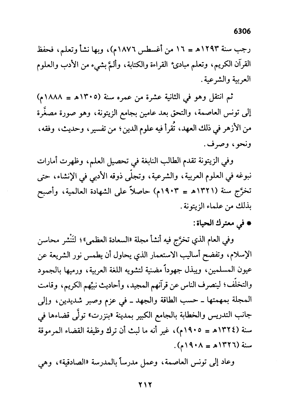 رجب سنة 1293 هـ = 16 من أغسطس 1876 م)، وبها نشأ وتعلم، فحفظ القرآن الكريم، وتعلم مبادئ القراءة والكتابة، وألمَّ بشيء من الأدب والعلوم العربية والشرعية.
