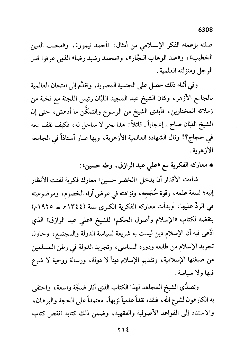 * معاركه الفكرية مع "علي عبد الرازق، وطه حسين":