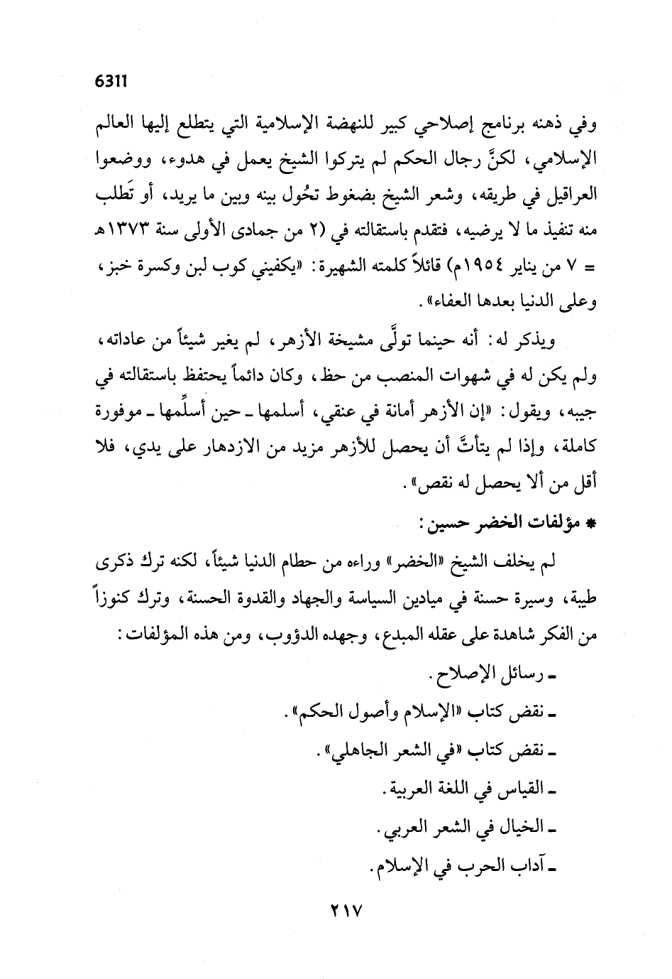 * مؤلفات الخضر حسين: