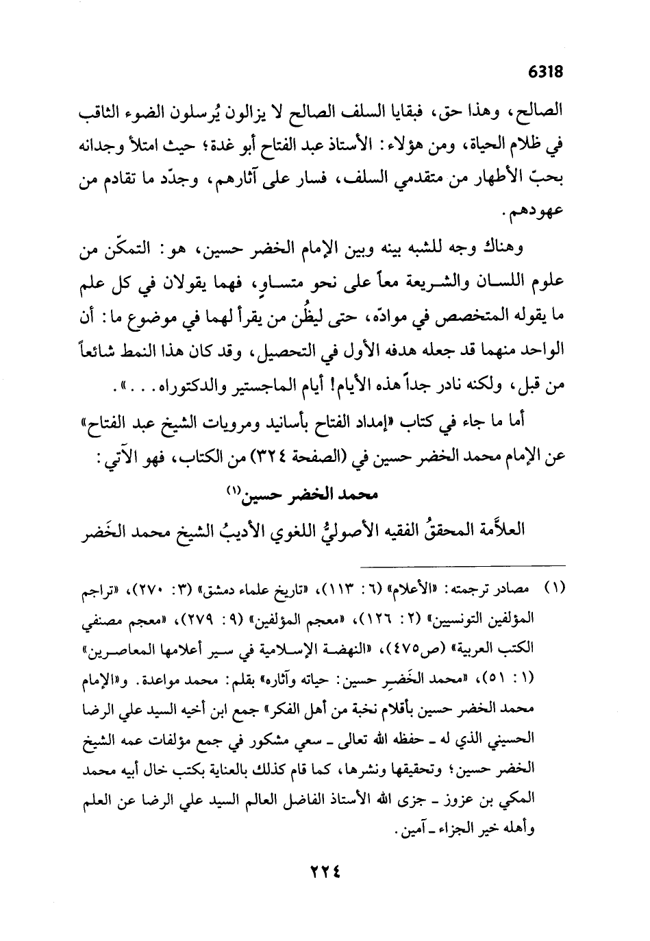 أما ما جاء في كتاب "إمداد الفتاح بأسانيد ومرويات الشيخ عبد الفتاح" عن الإمام محمد الخضر حسين في (الصفحة 324) من الكتاب، فهو الآتي: