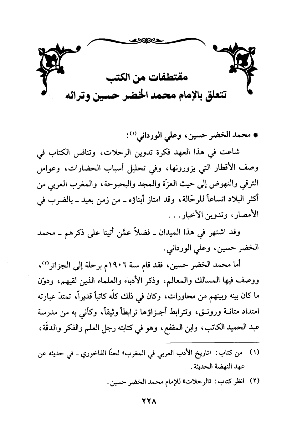 مقتطفات من الكتب من تتعلق بالإمام محمد الخضر حسين وتراثه