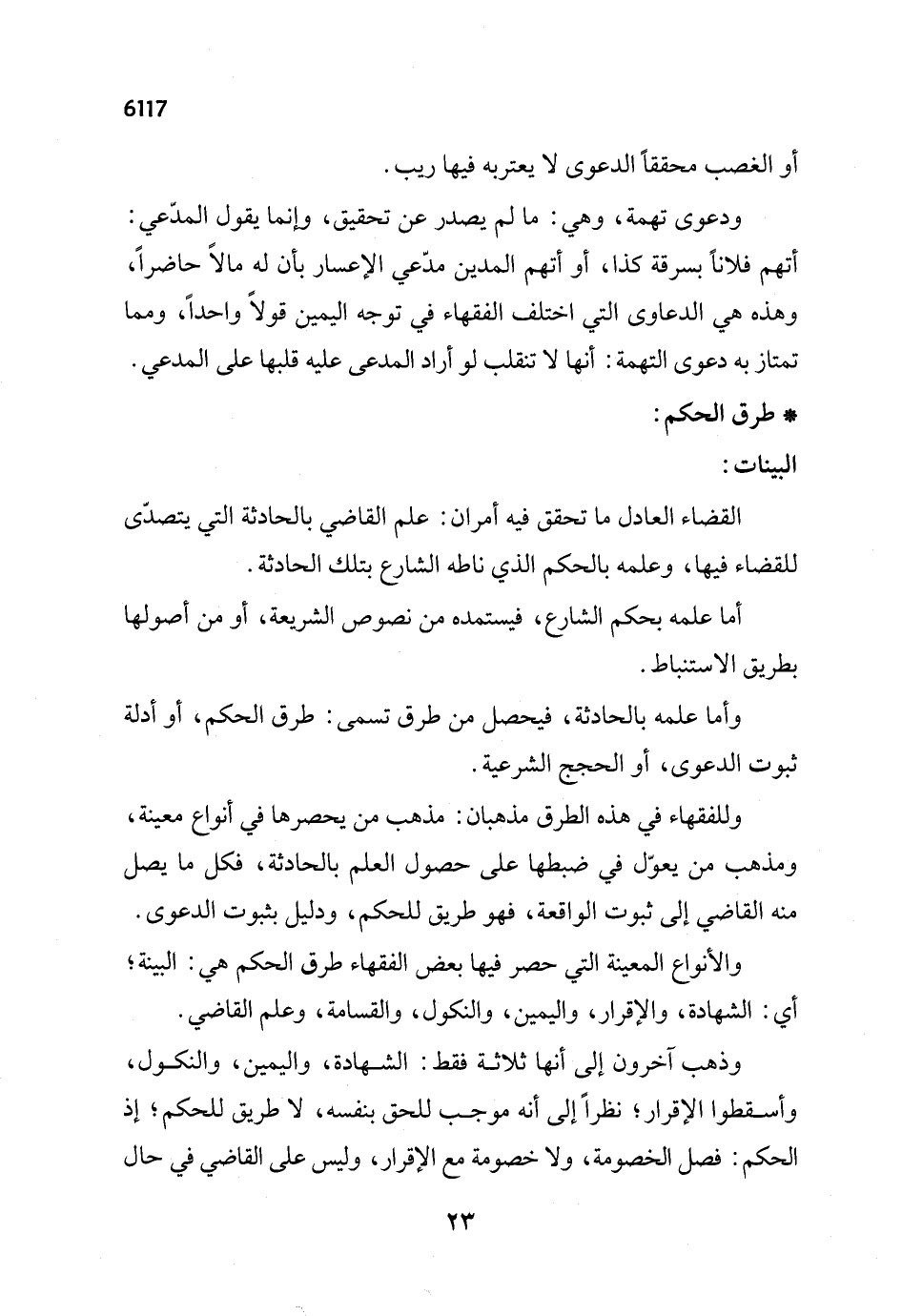 وللفقهاء في هذه الطرق مذهبان: مذهب من يحصرها في أنواع معينة، ومذهب من يعوّل في ضبطها على حصول العلم بالحادثة، فكل ما يصل منه القاضي إلى ثبوت الواقعة، فهو طريق للحكم، ودليل بثبوت الدعوى.