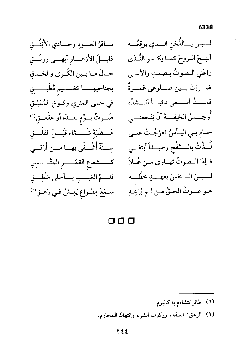 أُوجسُ الخيفةَ أنْ يَفجَعني ... صَوتُ بوُمٍ بعدَه أو عَقْعَقِ (¬1)