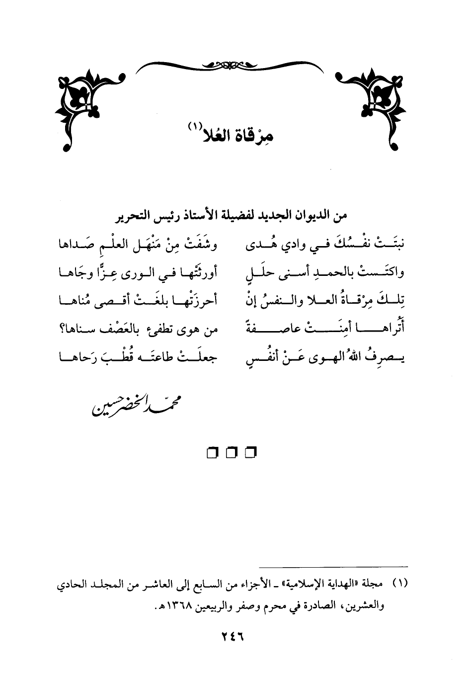 من الديوان الجديد لفضيلة الأستاذ رئيس التحرير