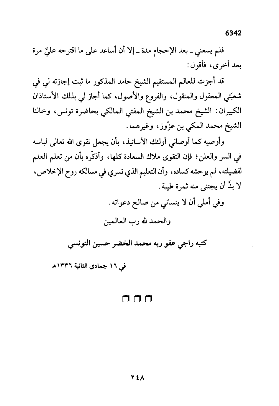 كتبه راجي عفو ربه محمد الخضر حسين التونسي