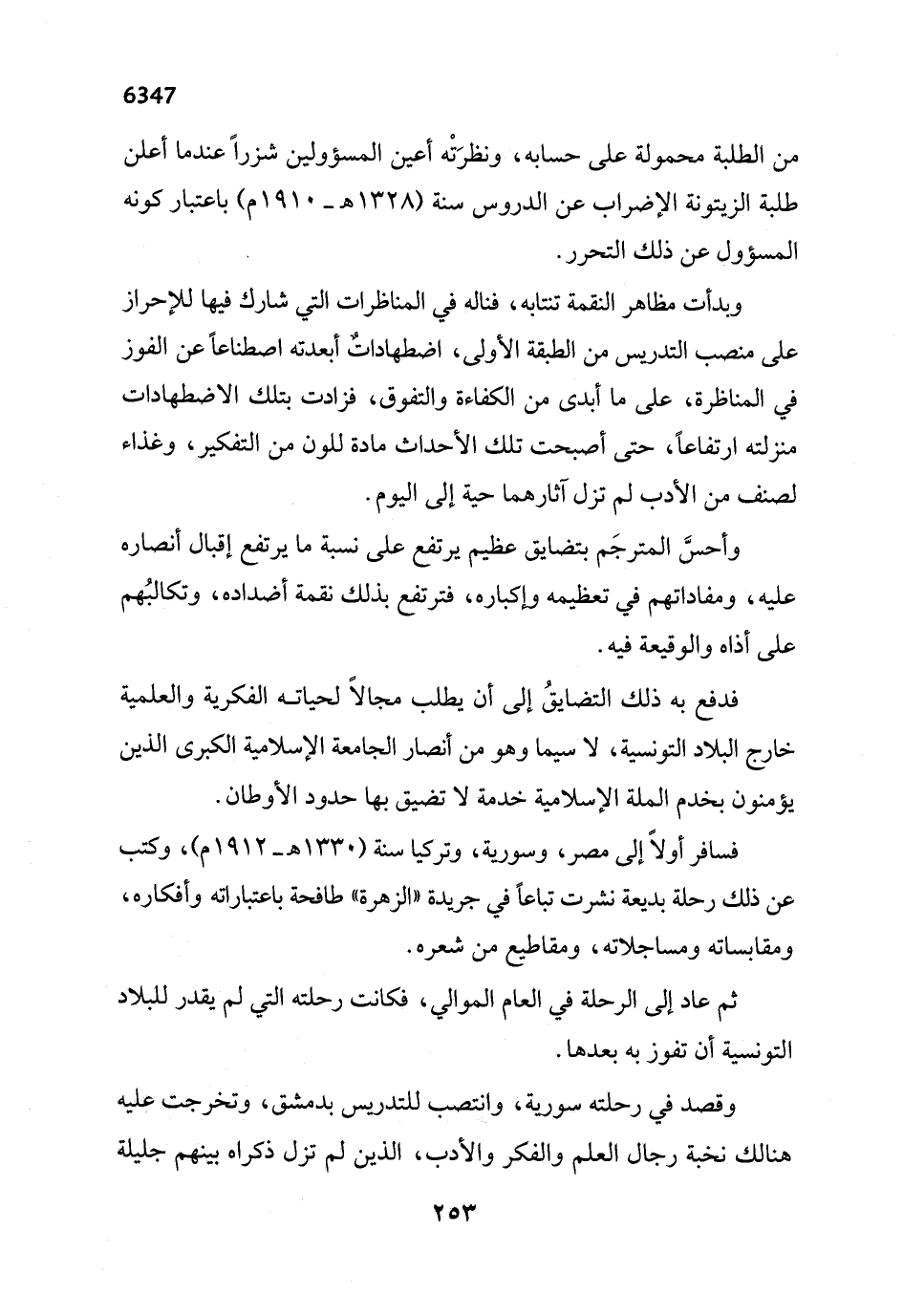 فدفع به ذلك التضايقُ إلى أن يطلب مجالاً لحياته الفكرية والعلمية خارج البلاد التونسية، لا سيما وهو من أنصار الجامعة الإسلامية الكبرى الذين يؤمنون بخدم الملة الإسلامية خدمة لا تضيق بها حدود الأوطان.