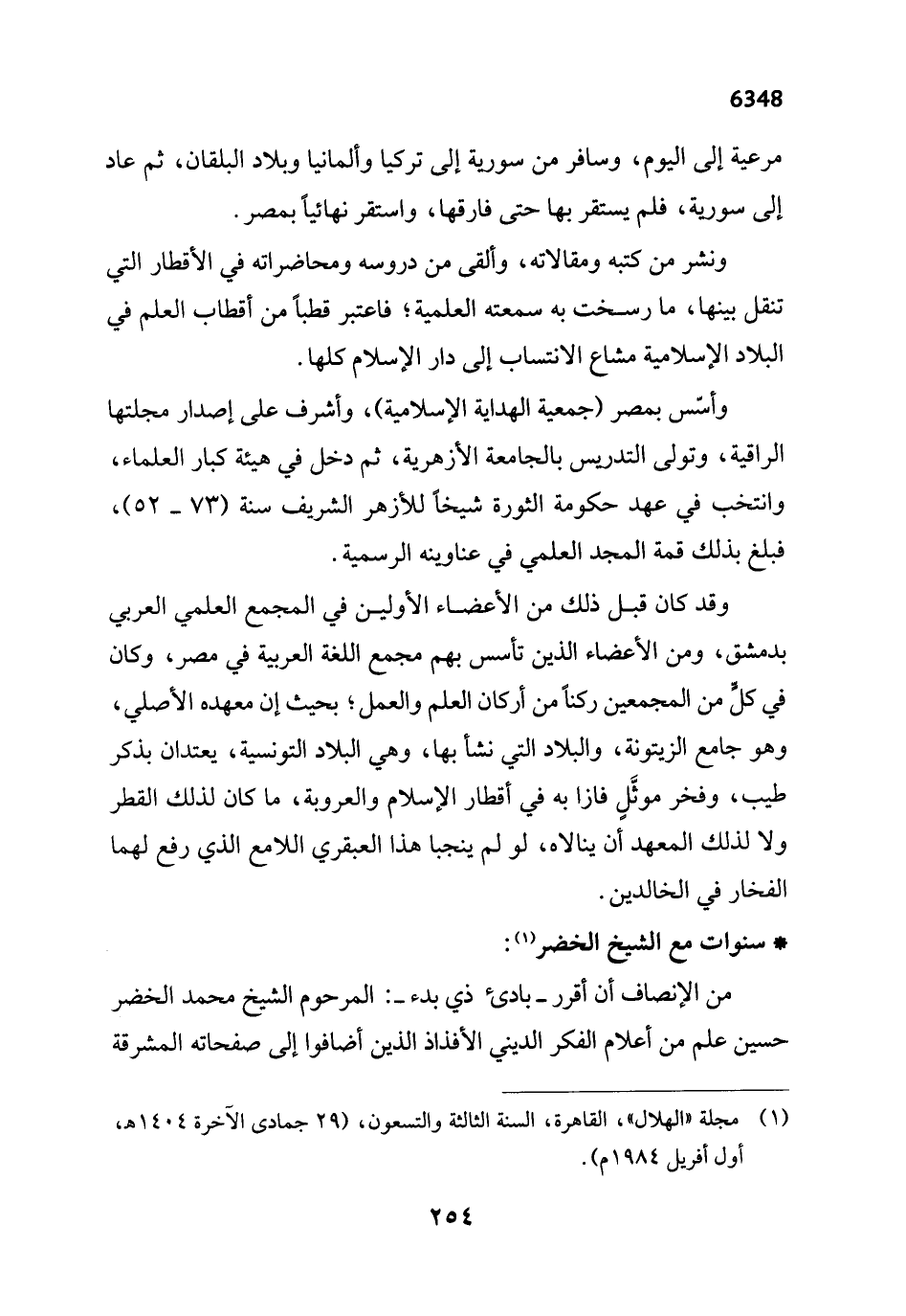 (¬1) مجلة "الهلال"، القاهرة، السنة الثالثة والتسعون، (29 جمادى الآخرة 1404 هـ أول أفريل 1984 م).