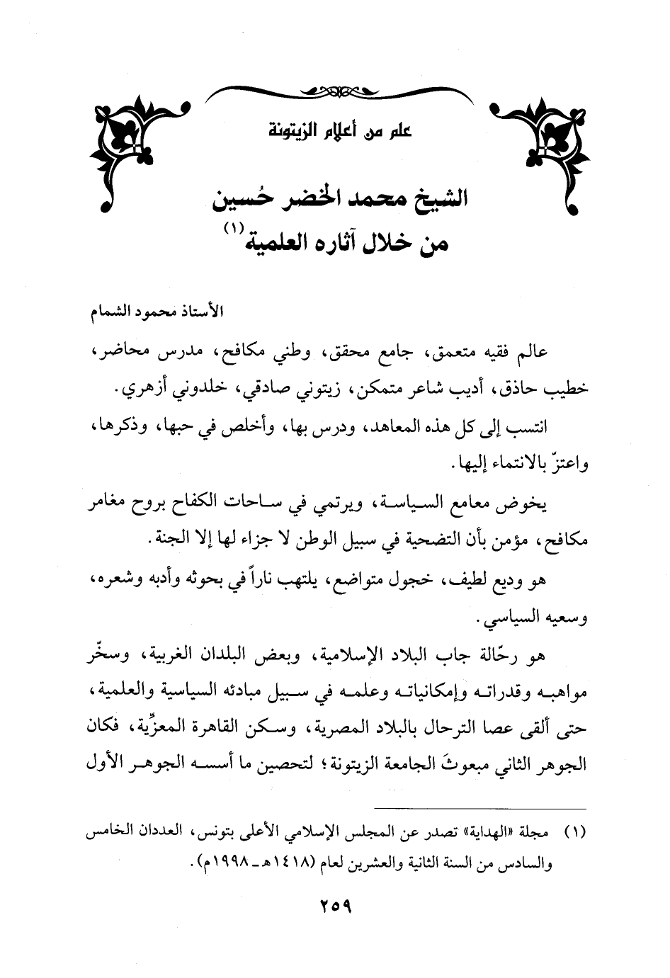 (¬1) مجلة "الهداية" تصدر عن المجلس الإسلامي الأعلى بتونس، العددان الخامس والسادس من السنة الثانية والعشرين لعام (1418 هـ - 1998 م).