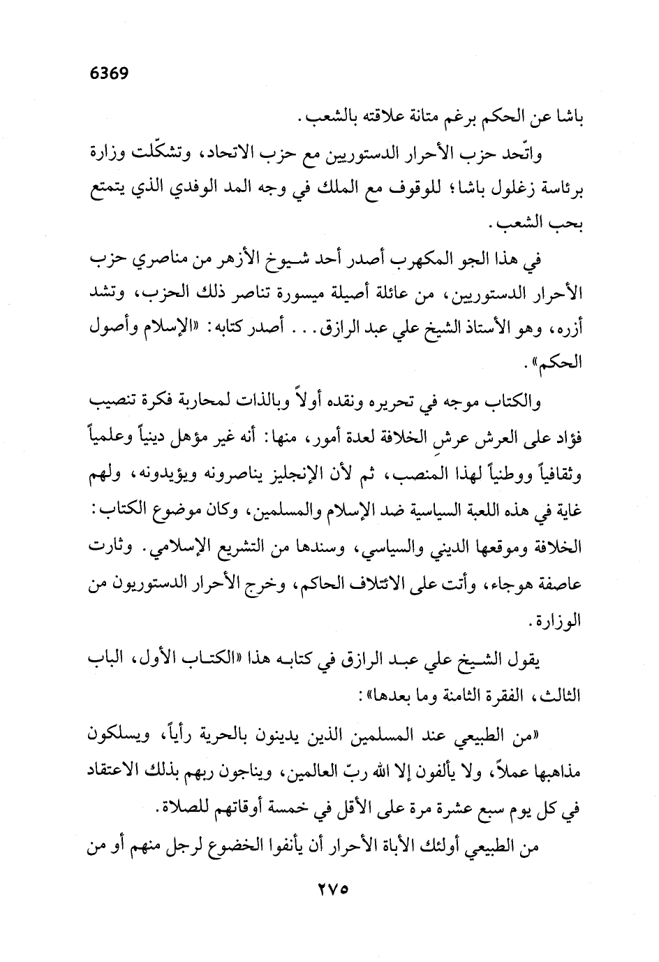 يقول الشيخ علي عبد الرازق في كتابه هذا "الكتاب الأول، الباب الثالث، الفقرة الثامنة وما بعدها":