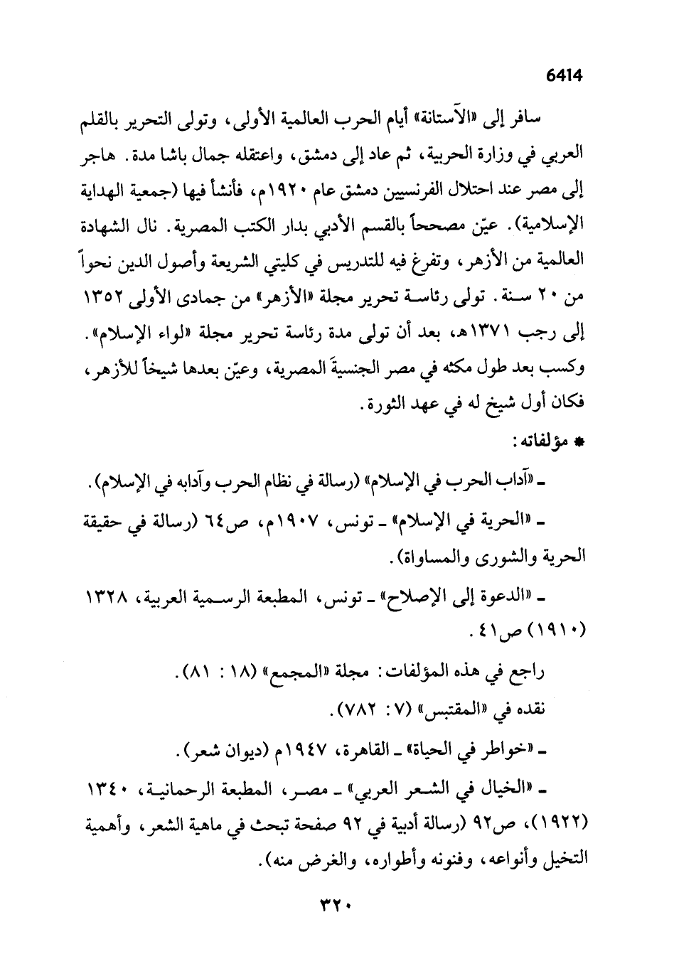 - "الدعوة إلى الإصلاح" - تونس، المطبعة الرسمية العربية، 1328 (1910) ص 41.