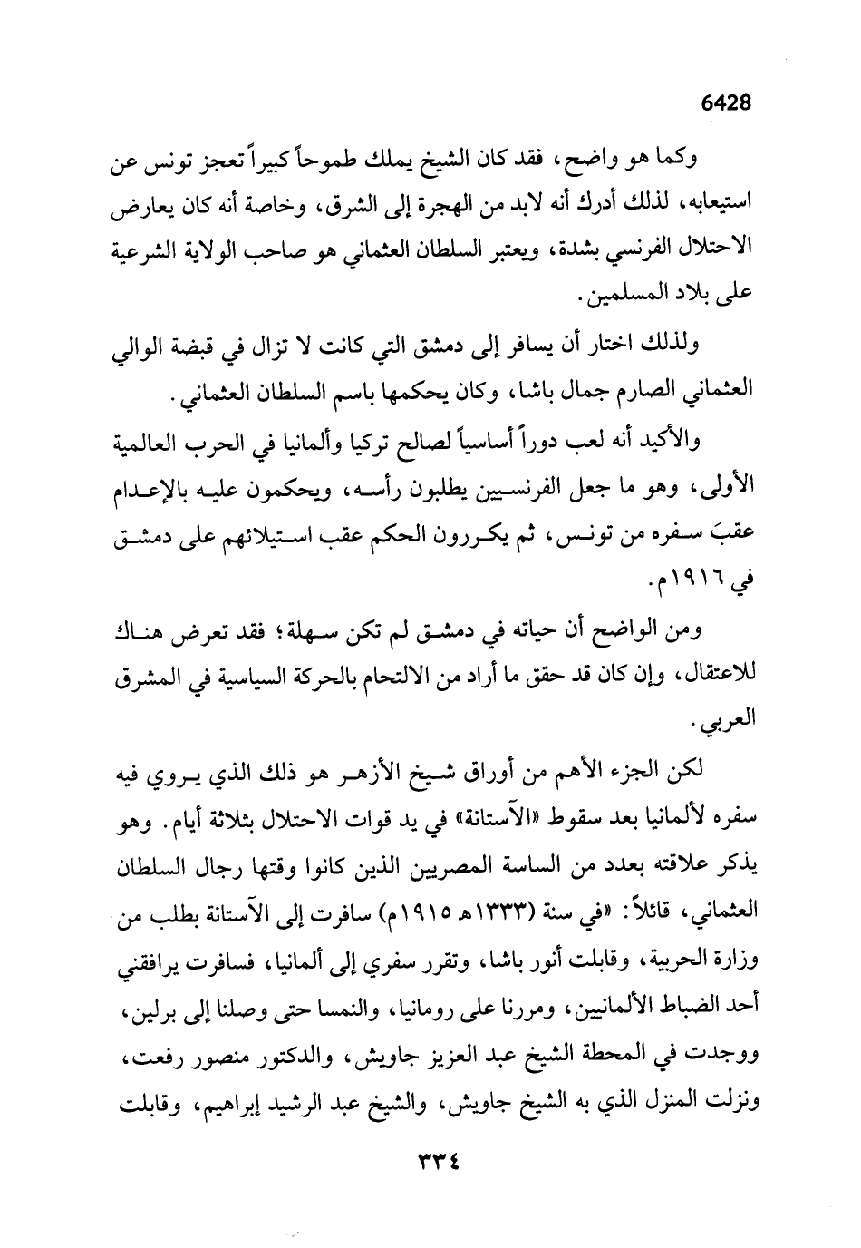 والأكيد أنه لعب دوراً أساسياً لصالح تركيا وألمانيا في الحرب العالمية الأولى، وهو ما جعل الفرنسيين يطلبون رأسه، ويحكمون عليه بالإعدام عقبَ سفره من تونس، ثم يكررون الحكم عقب استيلائهم على دمشق في 1916 م.