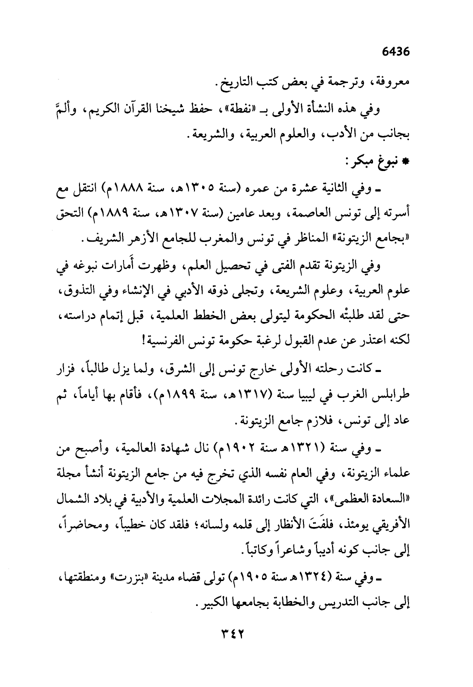 - وفي الثانية عشرة من عمره (سنة 1305 هـ، سنة 1888 م) انتقل مع أسرته إلى تونس العاصمة، وبعد عامين (سنة 1307 هـ , سنة 1889 م) التحق "بجامع الزيتونة" المناظر في تونس والمغرب للجامع الأزهر الشريف.