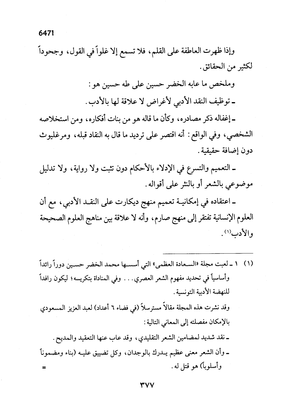 - التعميم والتسرع في الإدلاء بالأحكام دون تثبت ولا رواية، ولا تدليل موضوعي بالشعر أو بالتثر على أقواله.