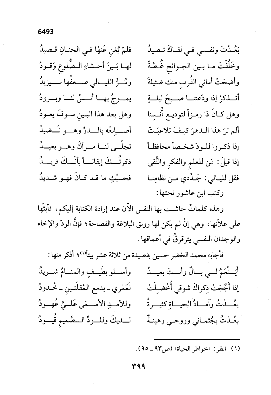وهذه كلماتٌ جاشت بها النفس الآن عند إرادة الكتابة إليكم، فأبثّها على علّاتها، وهي إنْ لم يكن لها رونق البلاغة والفصاحة؛ فإنَّ الودّ والإخاء والوجدان النفسي يترقرقُ في أعماقها.
