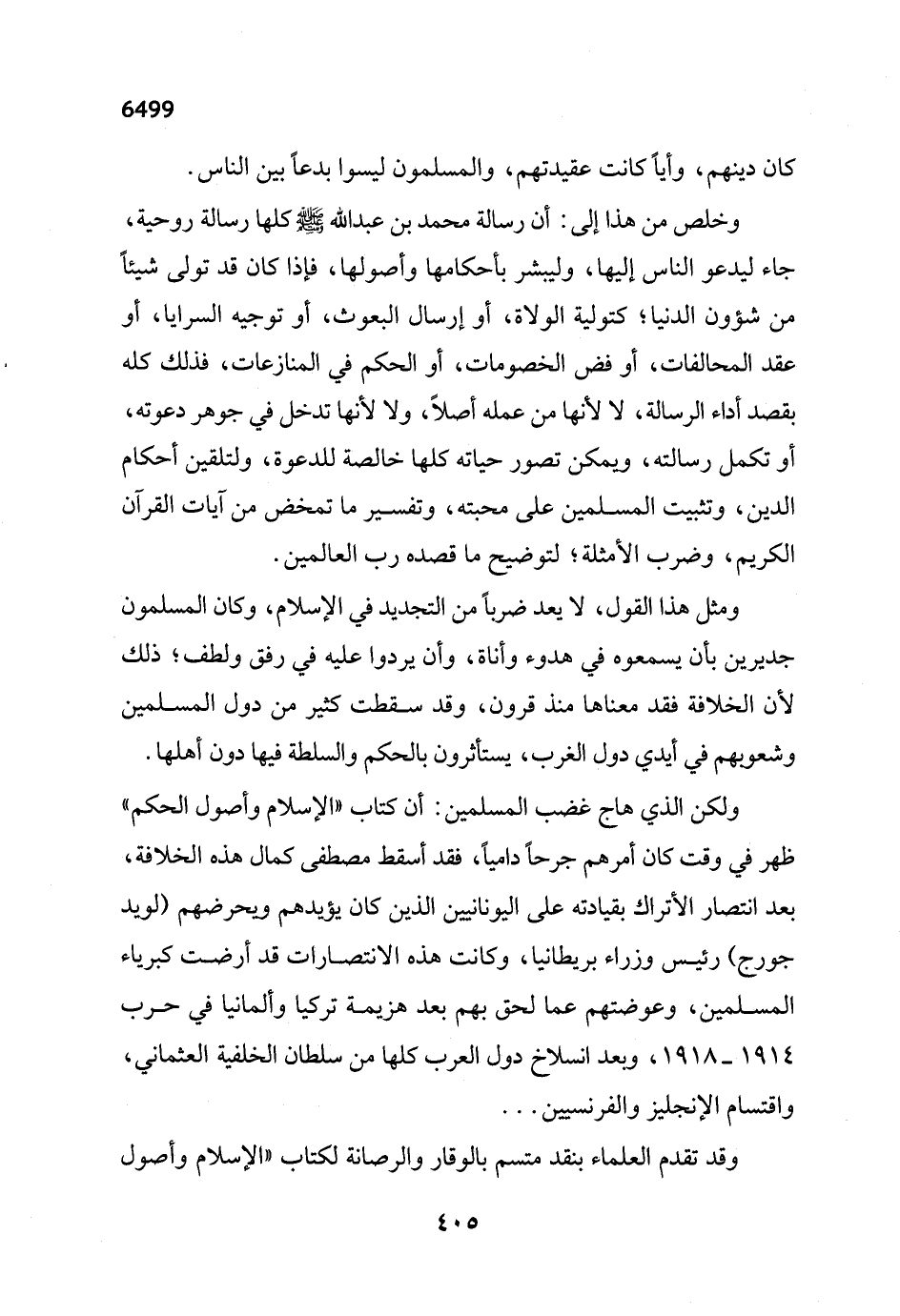ومثل هذا القول، لا يعد ضرباً من التجديد في الإسلام، وكان المسلمون جديرين بأن يسمعوه في هدوء وأناة، وأن يردوا عليه في رفق ولطف؛ ذلك لأن الخلافة فقد معناها منذ قرون، وقد سقطت كثير من دول المسلمين وشعوبهم في أيدي دول الغرب، يستأثرون بالحكم والسلطة فيها دون أهلها.