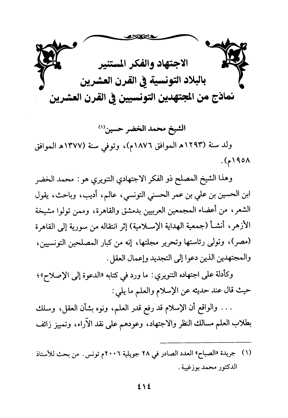 الاجتهاد والفكر المستنير بالبلاد التونسية في القرن العشرين نماذج من المجتهدين التونسيين في القرن العشرين