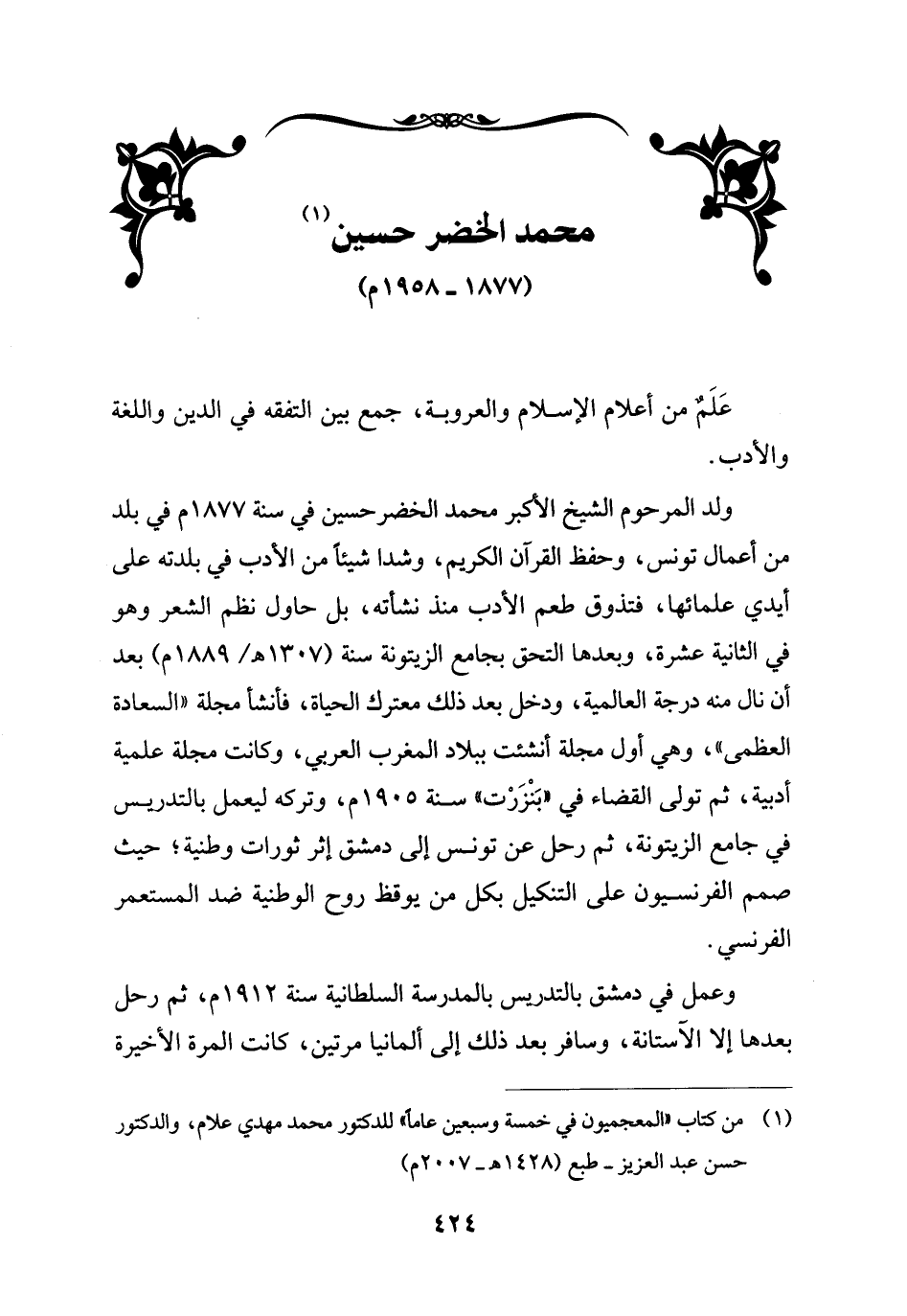 محمد الخضر حسين (¬1) (1877 - 1958 م)