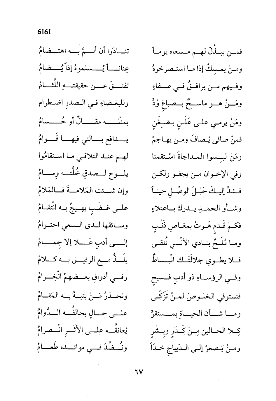فلا يطوي جلالَتَك انْبساطٌ ... يلَذُّ مع الرفيق به كلامُ