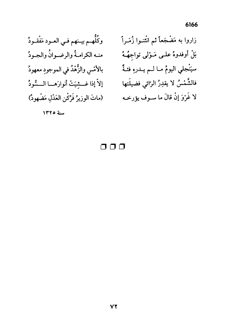 لا غَرْوَ إنْ قالَ ما سوف يؤرخه ... (ماتَ الوزيرُ فَرُكْن العَدْلِ مَضْهودُ)