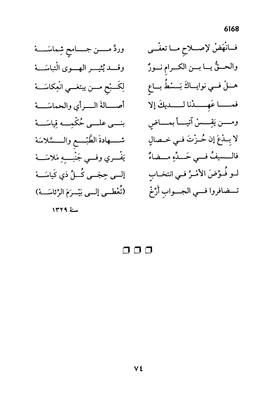 تضافروا في الجوابِ أَرِّخْ ... (تُعْطى إلى بَيْرَمَ الرِّئاسَهْ)