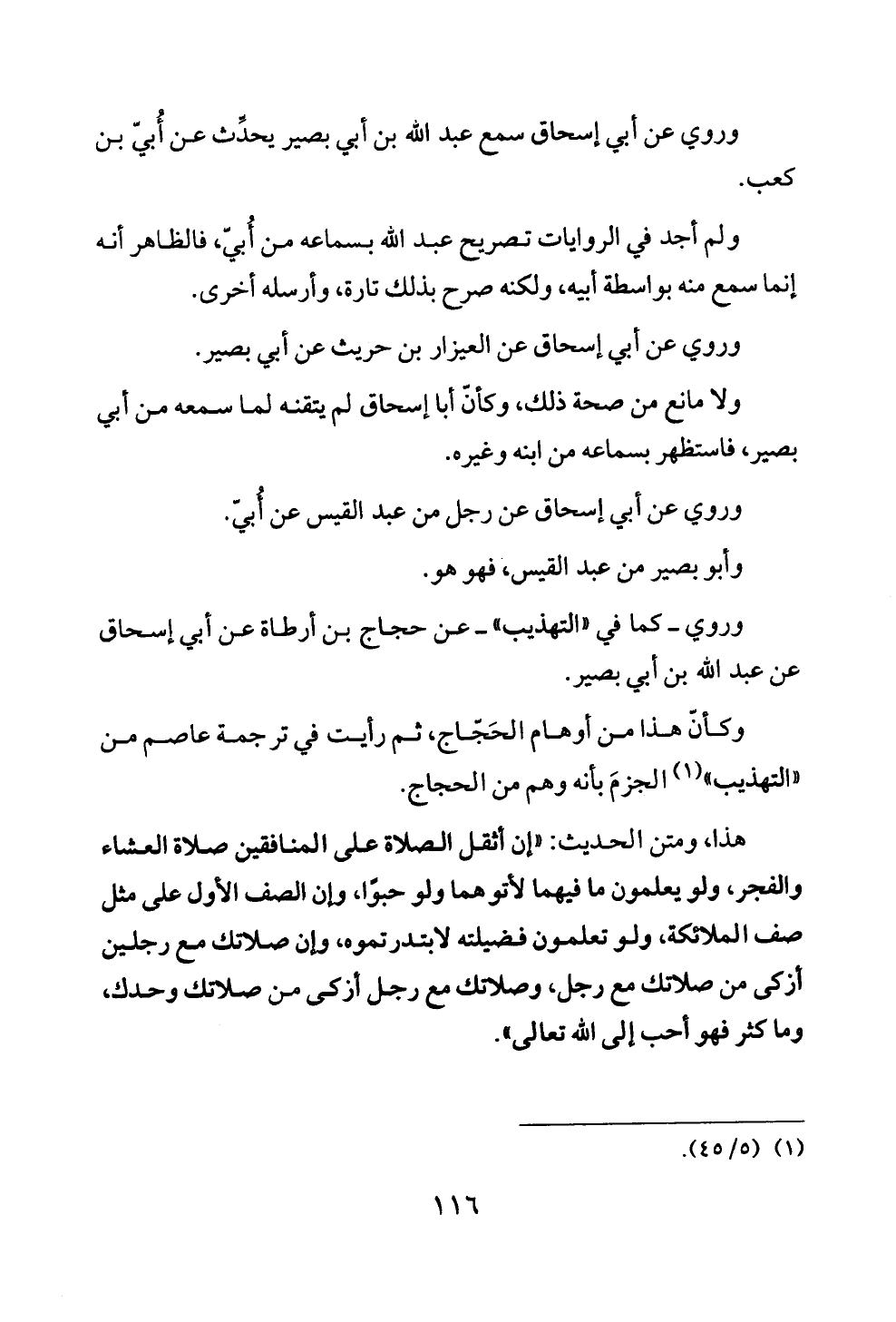وروي ــ كما في «التهذيب» ــ عن حجاج بن أرطاة عن أبي إسحاق عن عبد الله بن أبي بصير.