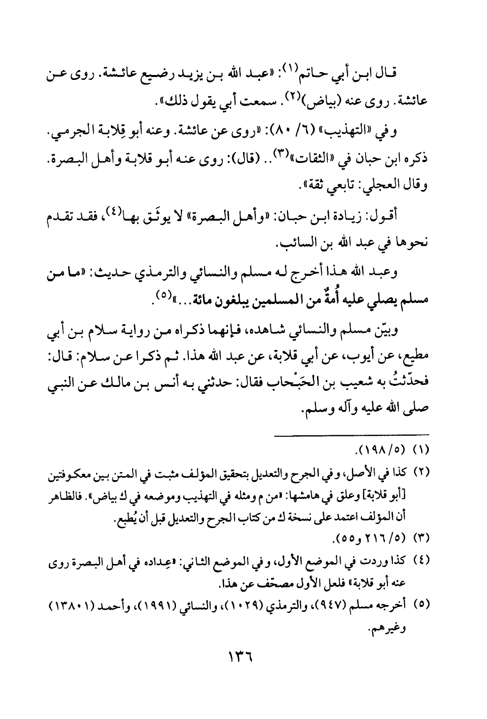 (¬٢) كذا في الأصل، وفي الجرح والتعديل بتحقيق المؤلف مثبت في المتن بين معكوفتين [أبو قلابة] وعلق في هامشها: «من م ومثله في التهذيب وموضعه في ك بياض». فالظاهر أن المؤلف اعتمد على نسخة ك من كتاب الجرح والتعديل قبل أن يُطبع.