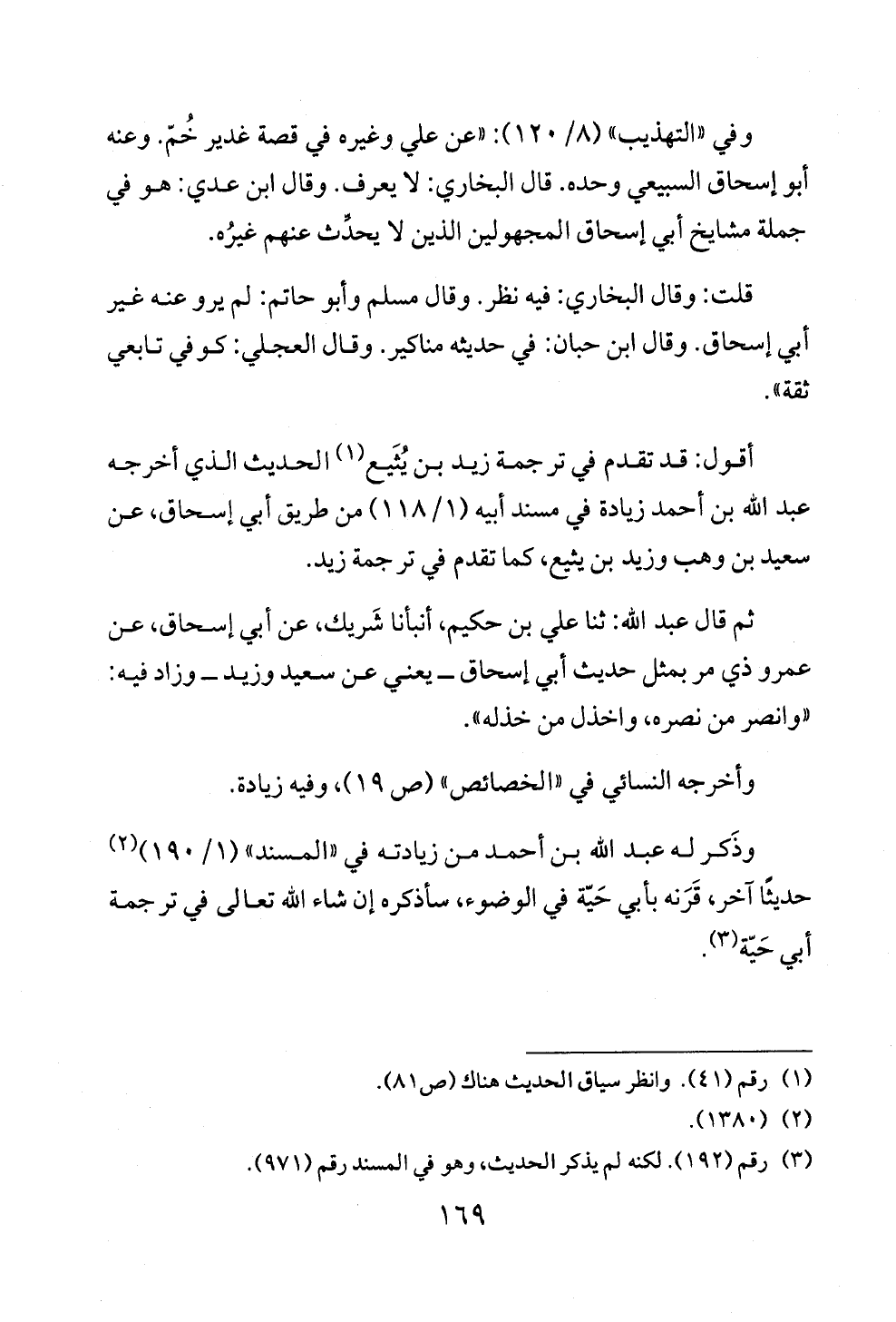 قلت: وقال البخاري: فيه نظر. وقال مسلم وأبو حاتم: لم يرو عنه غير أبي إسحاق. وقال ابن حبان: في حديثه مناكير. وقال العجلي: كوفي تابعي ثقة».