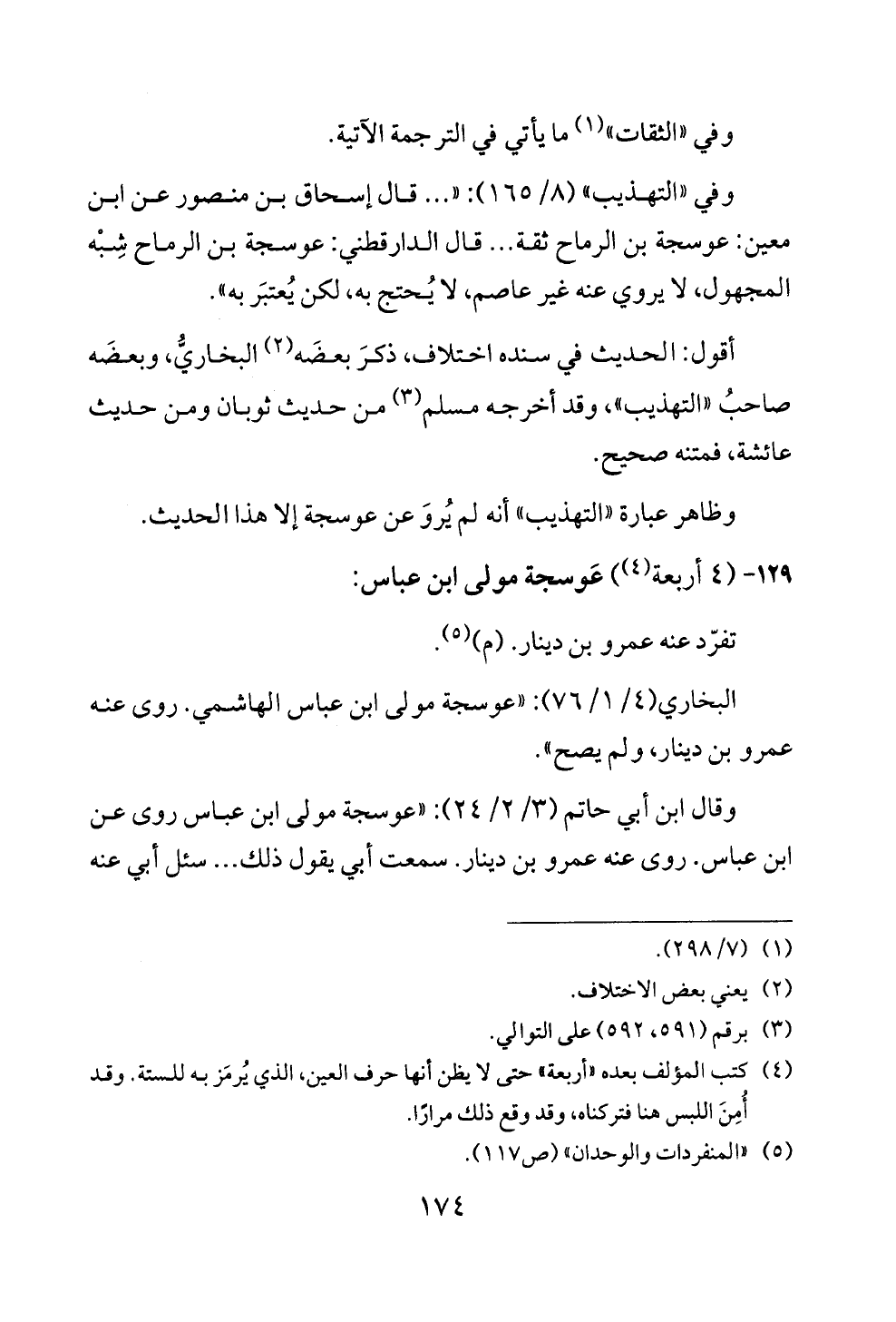 ١٢٩ - (٤ أربعة (¬٤)) عَوسجة مولى ابن عباس: