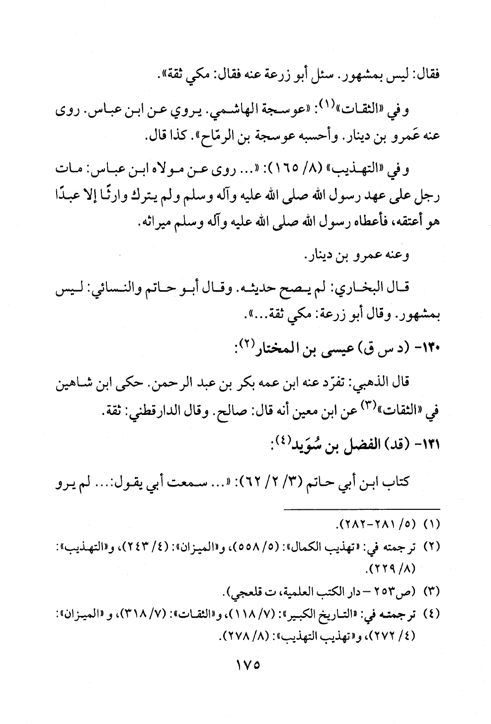 (¬٤) ترجمته في: «التاريخ الكبير»: (٧/ ١١٨)، و «الثقات»: (٧/ ٣١٨)، و «الميزان»: (٤/ ٢٧٢)، و «تهذيب التهذيب»: (٨/ ٢٧٨).