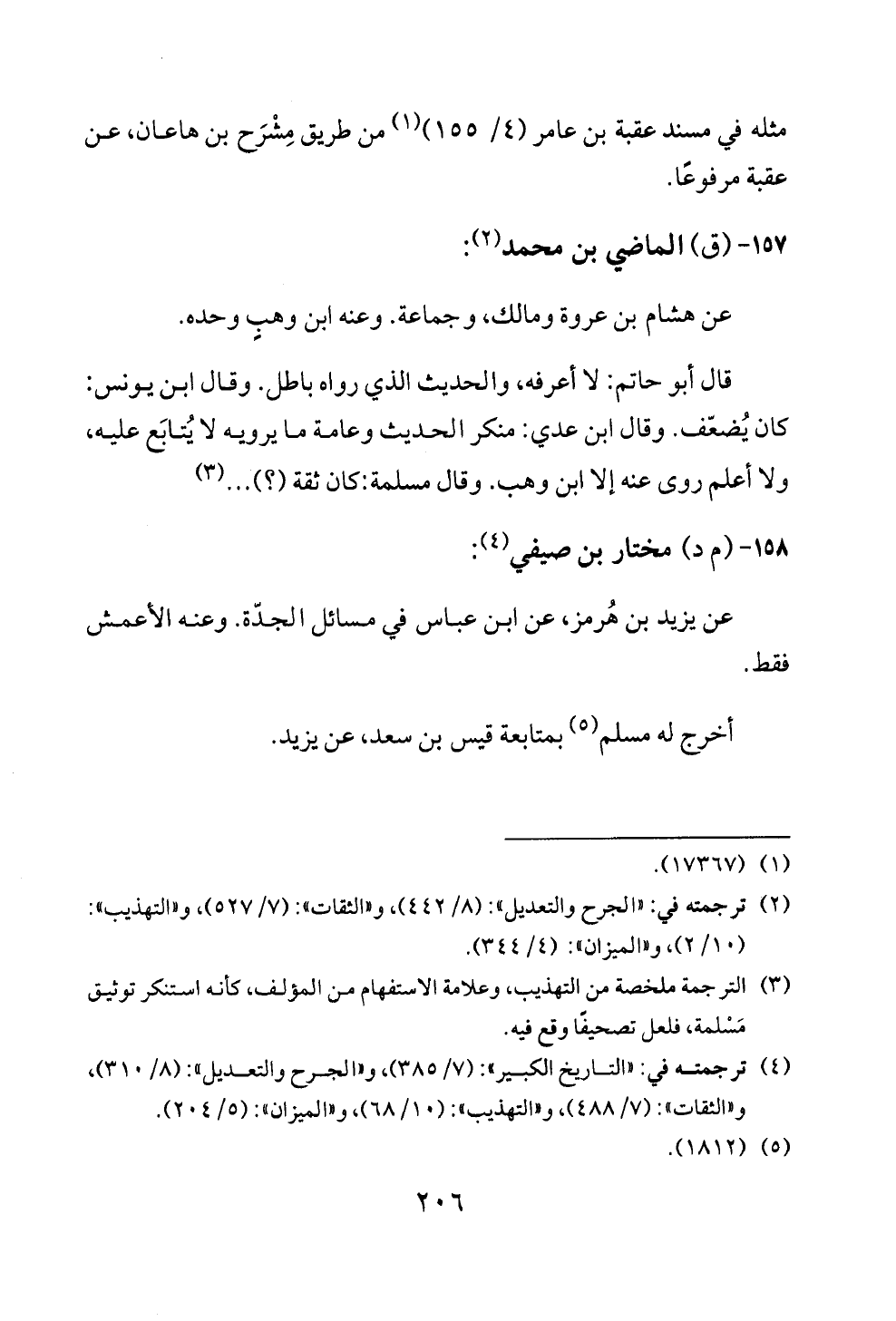(¬٤) ترجمته في: «التاريخ الكبير»: (٧/ ٣٨٥)، و «الجرح والتعديل»: (٨/ ٣١٠)، و «الثقات»: (٧/ ٤٨٨)، و «التهذيب»: (١٠/ ٦٨)، و «الميزان»: (٥/ ٢٠٤).