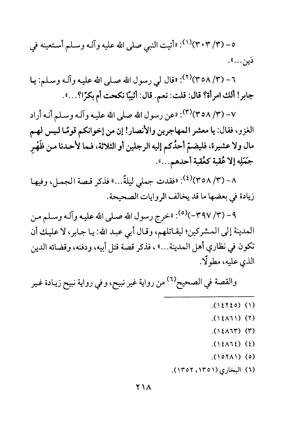 ٩ - (٣/ ٣٩٧ - ) (¬٥): «خرج رسول الله صلى الله عليه وآله وسلم من المدينة إلى المشركين؛ ليقاتلهم، وقال أبي عبد الله: يا جابر، لا عليك أن تكون في نظاري أهل المدينة ... »، فذكر قصة قتل أبيه، ودفنه، وقضائه الدين الذي عليه، مطولًا.