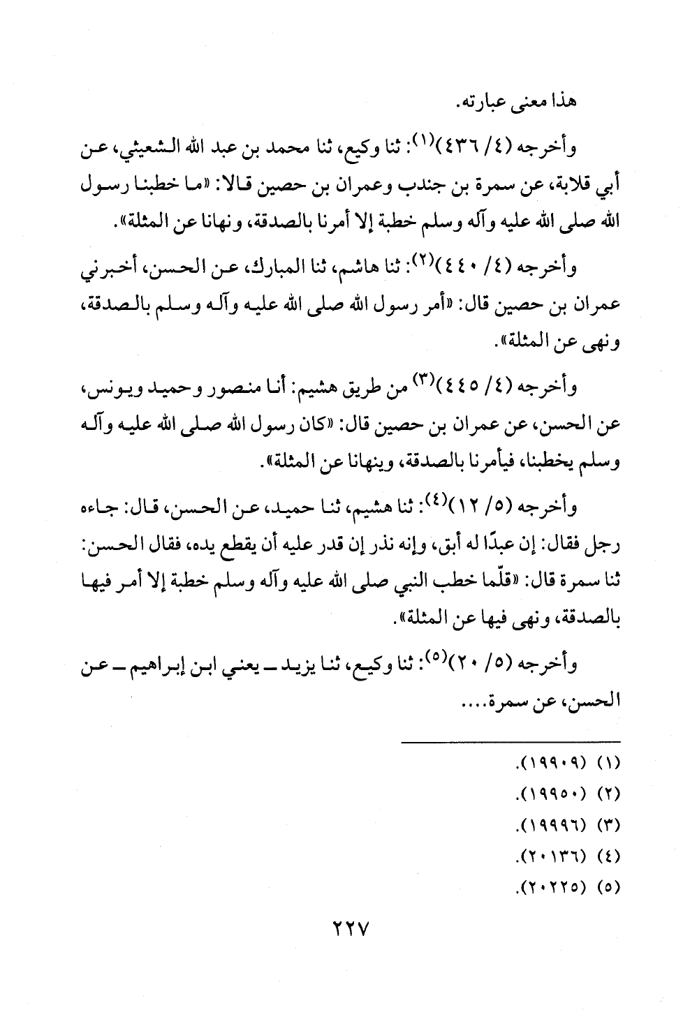 وأخرجه (٤/ ٤٤٥) (¬٣) من طريق هشيم: أنا منصور وحميد ويونس، عن الحسن، عن عمران بن حصين قال: «كان رسول الله صلى الله عليه وآله وسلم يخطبنا، فيأمرنا بالصدقة، وينهانا عن المثلة».