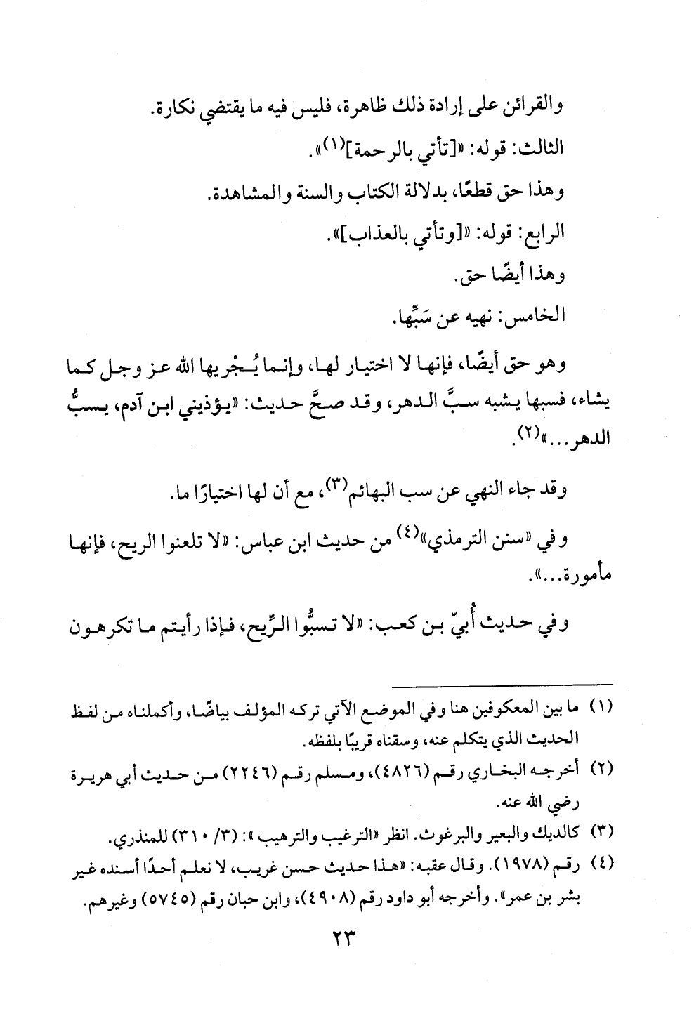 وهو حق أيضًا، فإنها لا اختيار لها، وإنما يُجْريها الله عز وجل كما يشاء، فسبها يشبه سبَّ الدهر، وقد صحَّ حديث: "يؤذيني ابن آدم، يسبُّ الدهر ... " (¬٢).