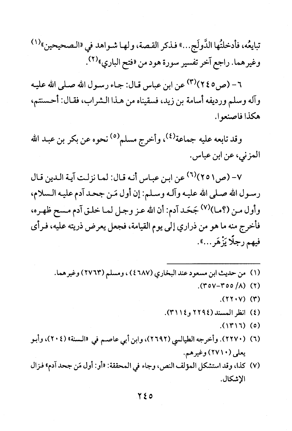 ٧ - (ص ٢٥١) (¬٦) عن ابن عباس أنه قال: لما نزلت آية الدين قال رسول الله صلى الله عليه وآله وسلم: إن أول مَن جحد آدم عليه السلام، وأول من (؟ ما) (¬٧) جَحَد آدم: أن الله عز وجل لما خلق آدم مسح ظهره، فأخرج منه ما هو من ذراري إلى يوم القيامة، فجعل يعرض ذريته عليه، فرأى فيهم رجلًا يَزْهَر ... ».
