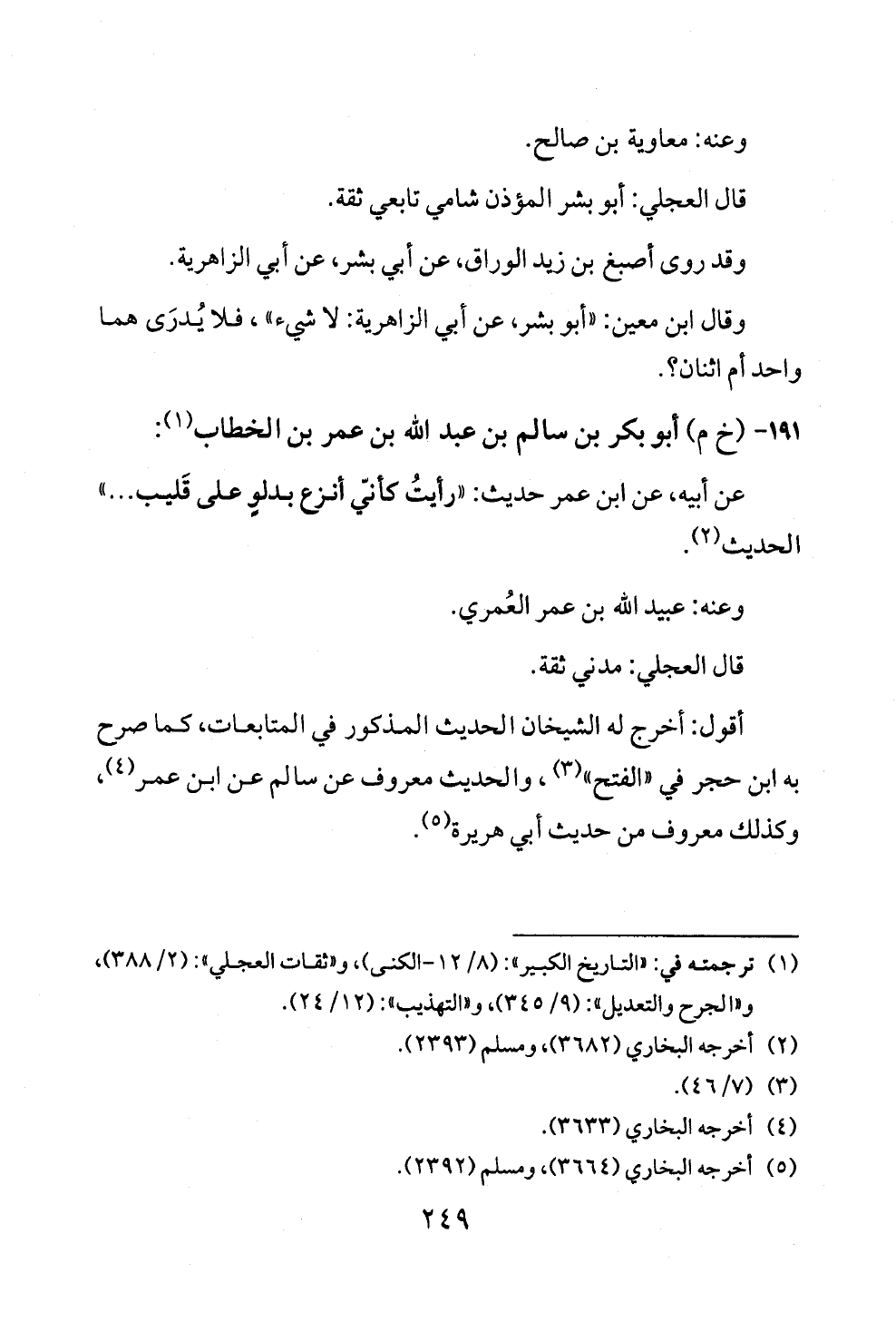 أقول: أخرج له الشيخان الحديث المذكور في المتابعات، كما صرح به ابن حجر في «الفتح» (¬٣)، والحديث معروف عن سالم عن ابن عمر (¬٤)، وكذلك معروف من حديث أبي هريرة (¬٥).