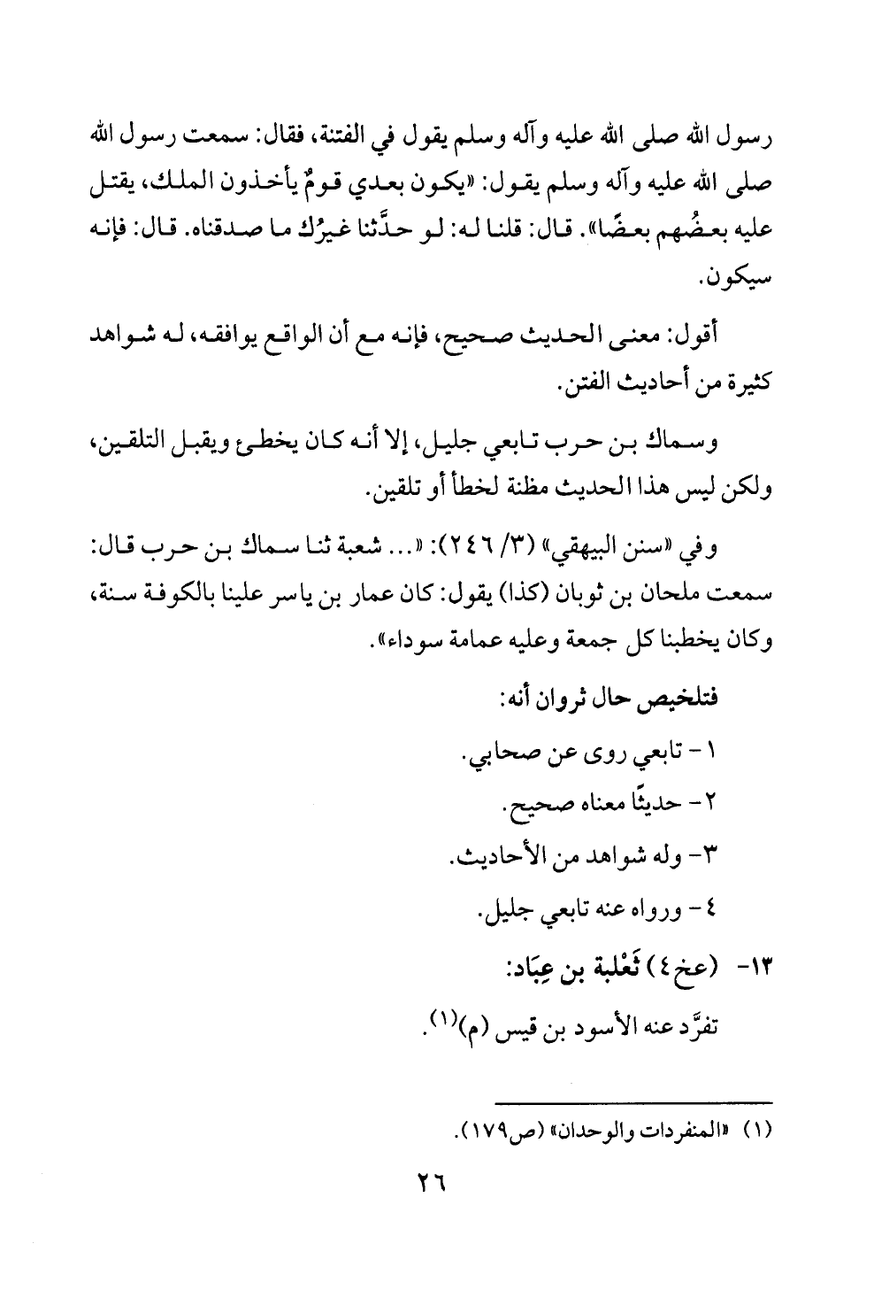 (¬١) "المنفردات والوحدان" (ص ١٧٩).