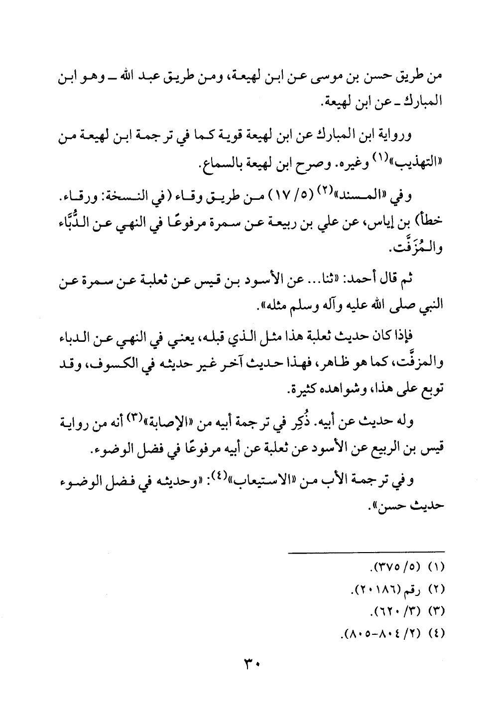 ثم قال أحمد: "ثنا ... عن الأسود بن قيس عن ثعلبة عن سمرة عن النبي صلى الله عليه وآله وسلم مثله".