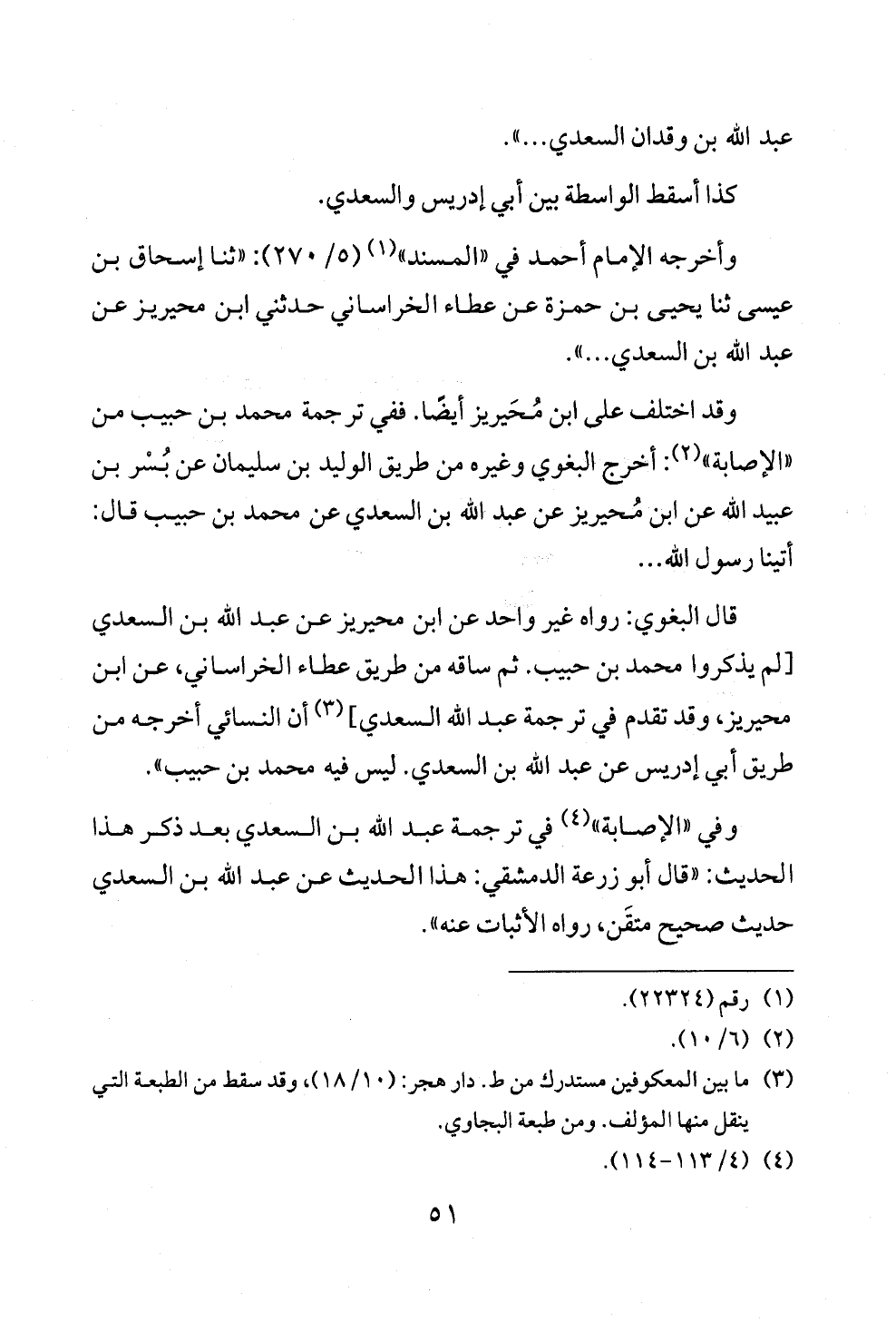 وفي "الإصابة" (¬٤) في ترجمة عبد الله بن السعدي بعد ذكر هذا الحديث: "قال أبو زرعة الدمشقي: هذا الحديث عن عبد الله بن السعدي حديث صحيح متقَن، رواه الأثبات عنه".