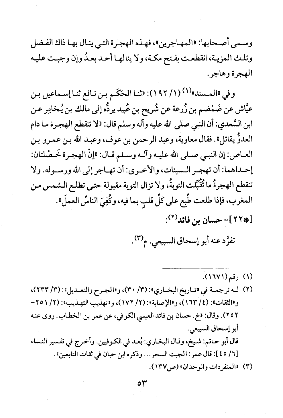 (¬٢) له ترجمة في "تاريخ البخاري": (٣/ ٣٠)، و"الجرح والتعديل": (٣/ ٢٣٣)، و"الثقات": (٤/ ١٦٣)، و"الإصابة": (٢/ ١٧٢)، و"تهذيب التهذيب": (٢/ ٢٥١ - ٢٥٢). وقال: "خ. حسان بن فائد العبسي الكوفي، عن عمر بن الخطاب. روى عنه أبو إسحاق السبيعي.