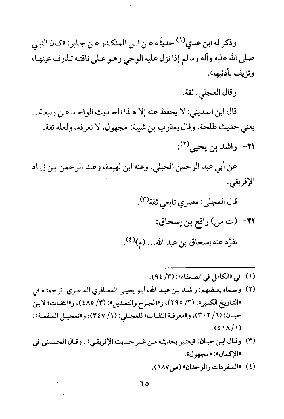 (¬٣) وقال ابن حبان: «يعتبر بحديثه من غير حديث الإفريقي». وقال الحسيني في «الإكمال»: «مجهول».